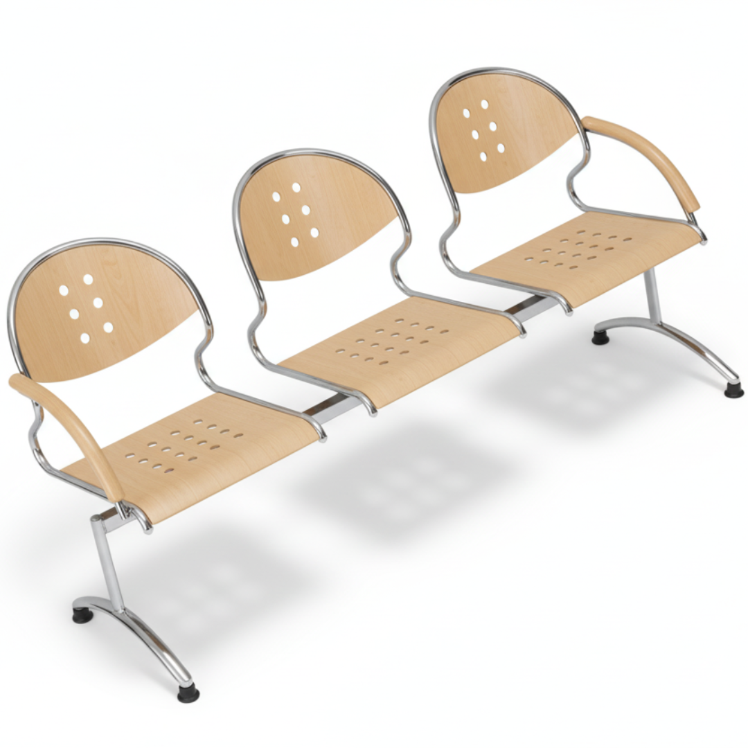 Constructed with a high-quality steel frame, the chair ensures excellent strength and stability, capable of withstanding daily heavy use. The polished chrome finish resists rust and corrosion, maintaining its fresh appearance for years. The seat and backrest are made of molded wood, ergonomically shaped to provide comfort during long waiting periods. The natural wood texture adds a touch of warmth, making the seating area more inviting.