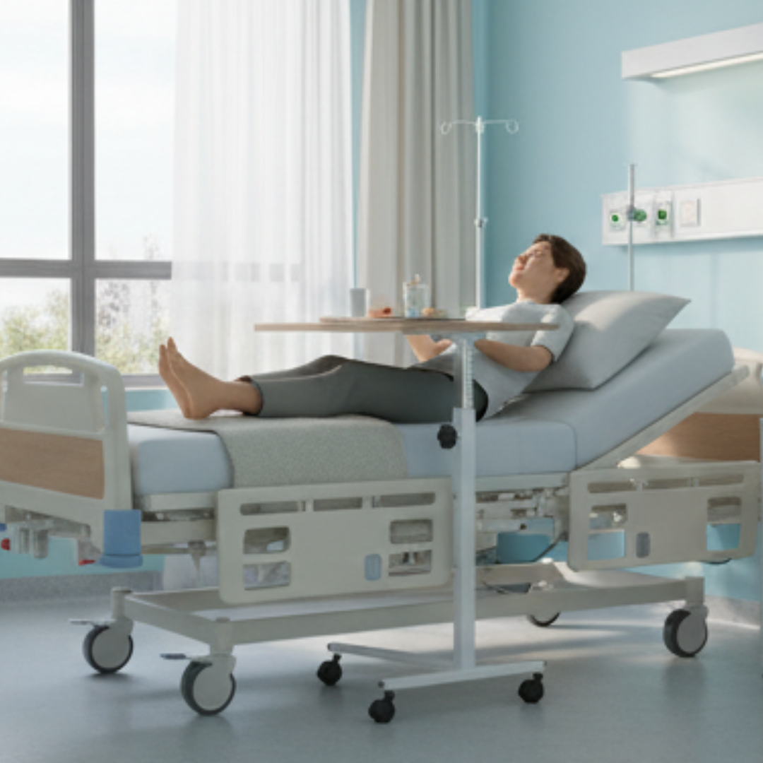 Perfect for hospitals, clinics, and home care setups, this table allows caregivers to assist patients more easily while ensuring patient comfort and independence.