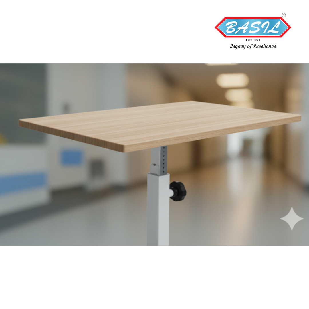 The BE-6570 Adjustable Bed Side Cardiac Table (Knob Type) by Balaji Enterprises is a reliable, easy-to-operate overbed table perfect for hospital and clinical environments. Designed for patient convenience and nurse efficiency, it combines strength, mobility, and hygiene in one compact design.