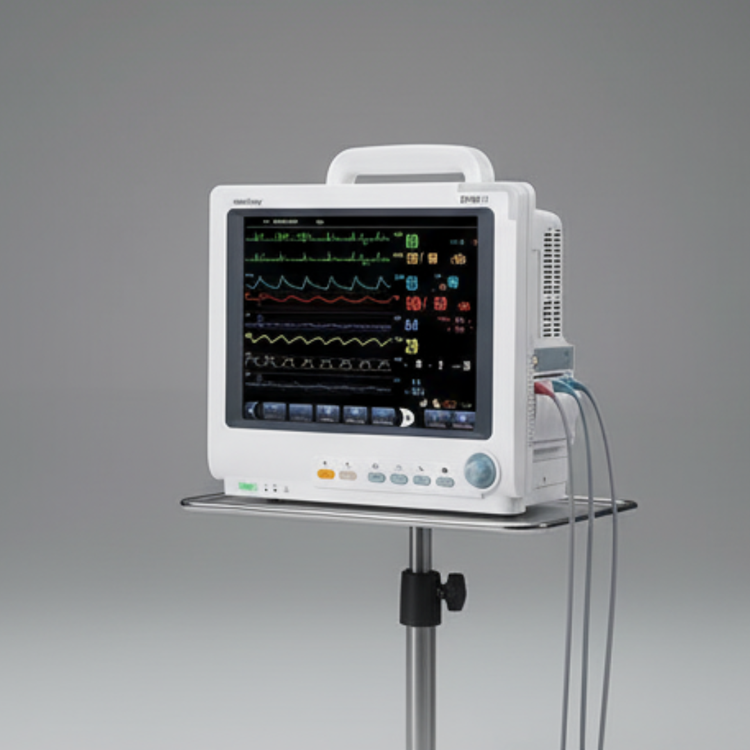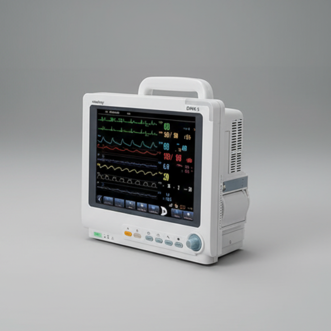 The 5 Para Patient Monitor offers accurate and continuous tracking of vital parameters like ECG, SpO₂, NIBP, temperature, and respiration. Built with a high-resolution display and reliable sensors, it ensures real-time monitoring in ICUs, wards, and operation theatres.