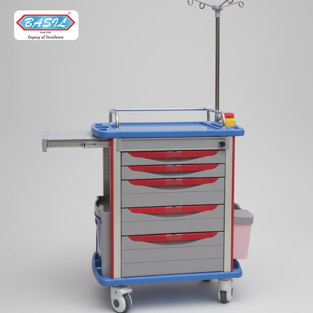 The BE 4124 Luxury Emergency Trolley from Balaji Enterprises is an advanced, hospital-grade solution crafted to enhance emergency response and patient management efficiency. This high-performance trolley is thoughtfully designed to handle critical first-aid and emergency situations with reliability, organization, and mobility.