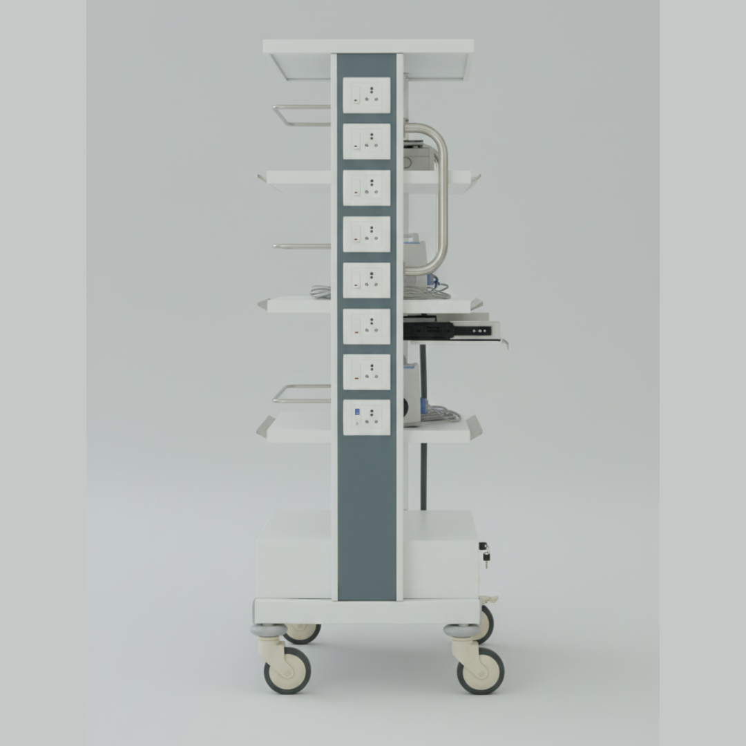 The BE-4032 OT Monitor Trolley is a high-performance, powder-coated medical trolley thoughtfully engineered to deliver durability, flexibility, and hygiene in demanding medical environments. Matching the specifications of the stainless-steel BE-4048 model, this version offers a cost-effective, powder-coated alternative without compromising on strength or efficiency.