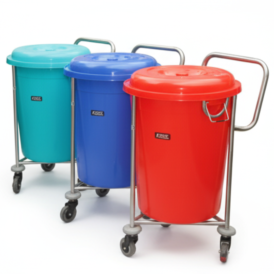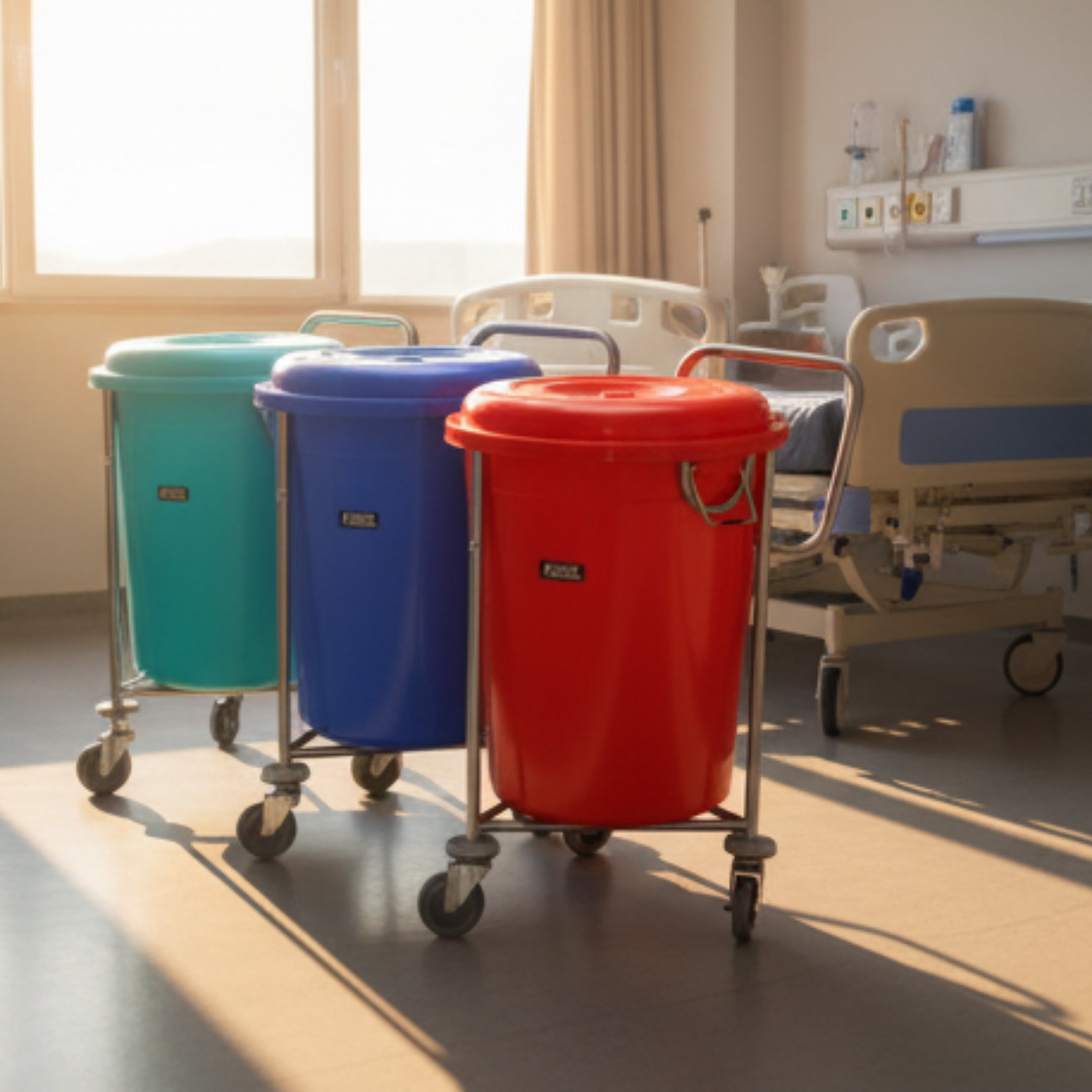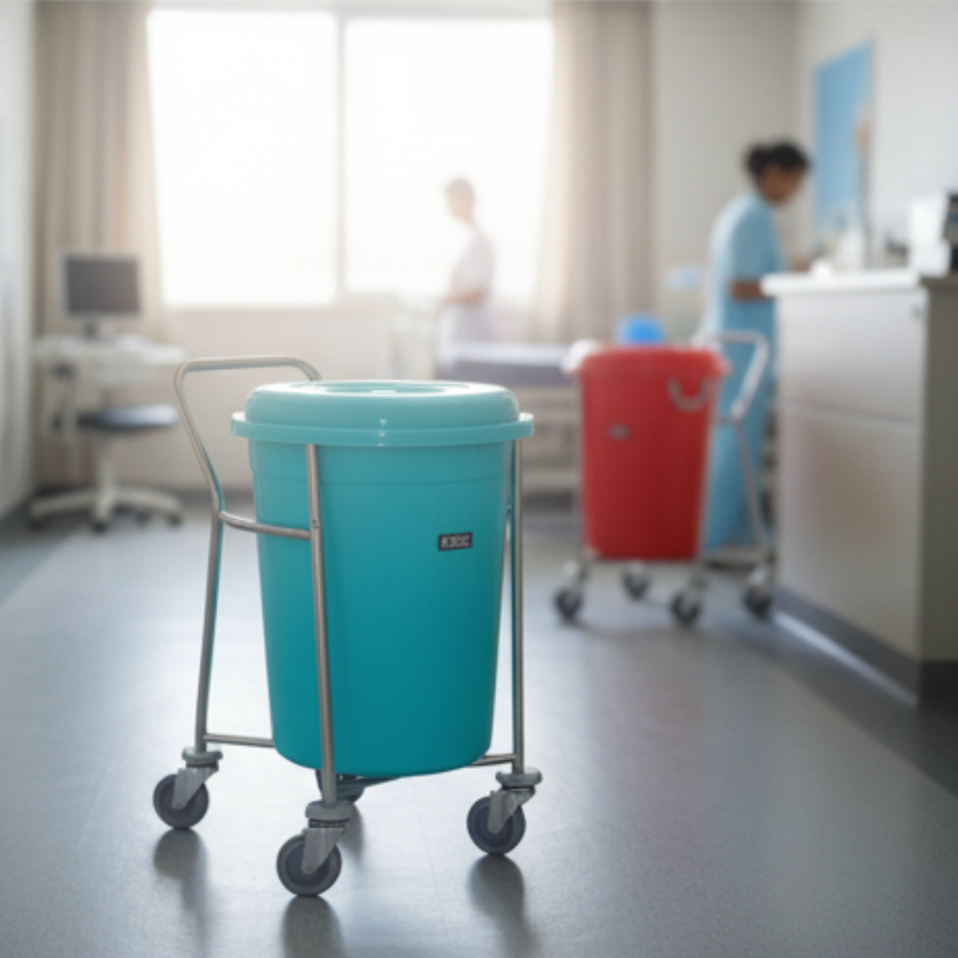 This trolley makes linen disposal fast, safe, and sanitary. The large-capacity buckets and smooth castor wheels reduce strain on staff while ensuring hygiene. The colour-coded bins help in organised waste sorting and management.