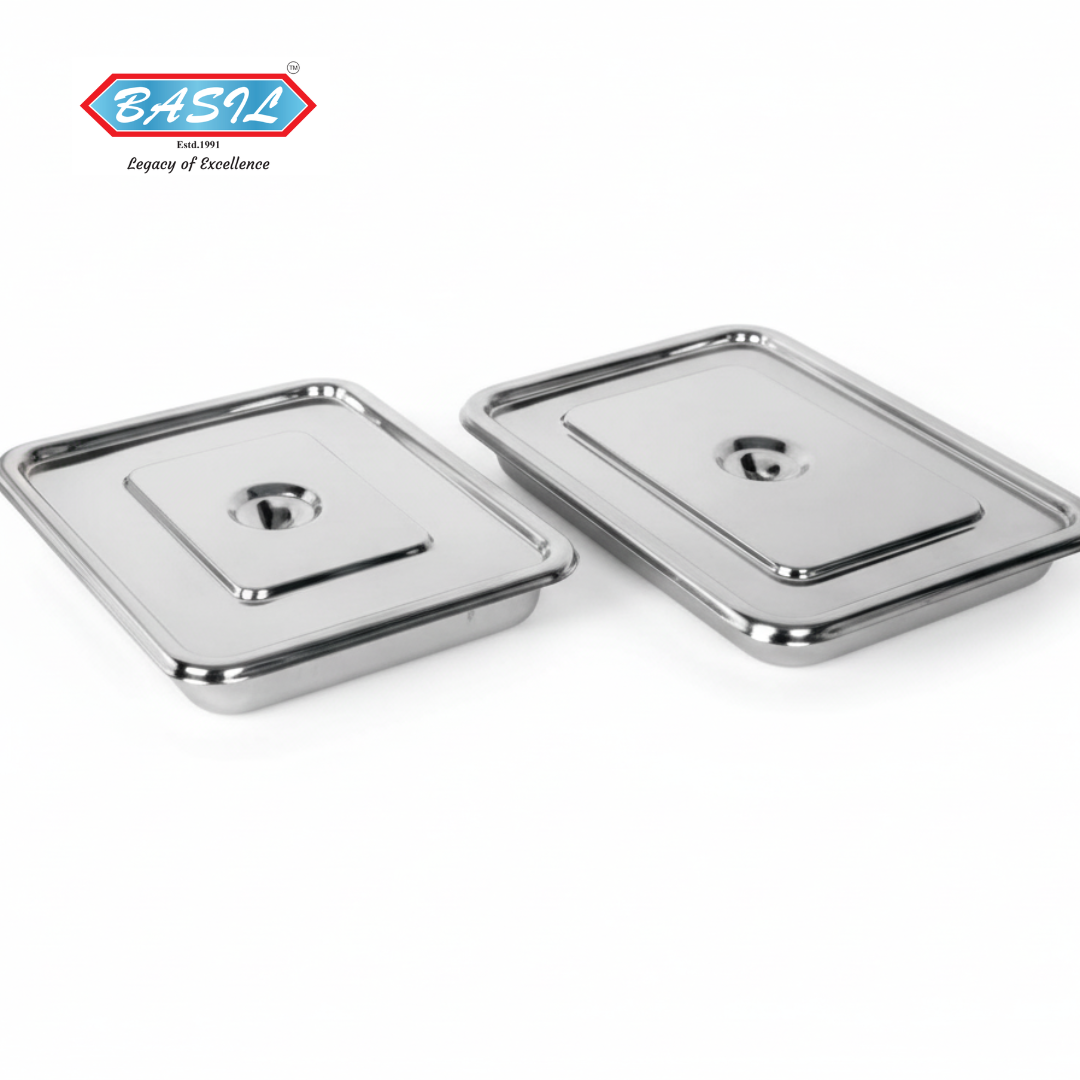 Each tray includes a fitted lid that protects instruments from contamination when not in use. The smooth, polished finish prevents bacterial growth and allows effortless cleaning. Reinforced corners and edges ensure the tray maintains its structural integrity even under frequent handling.