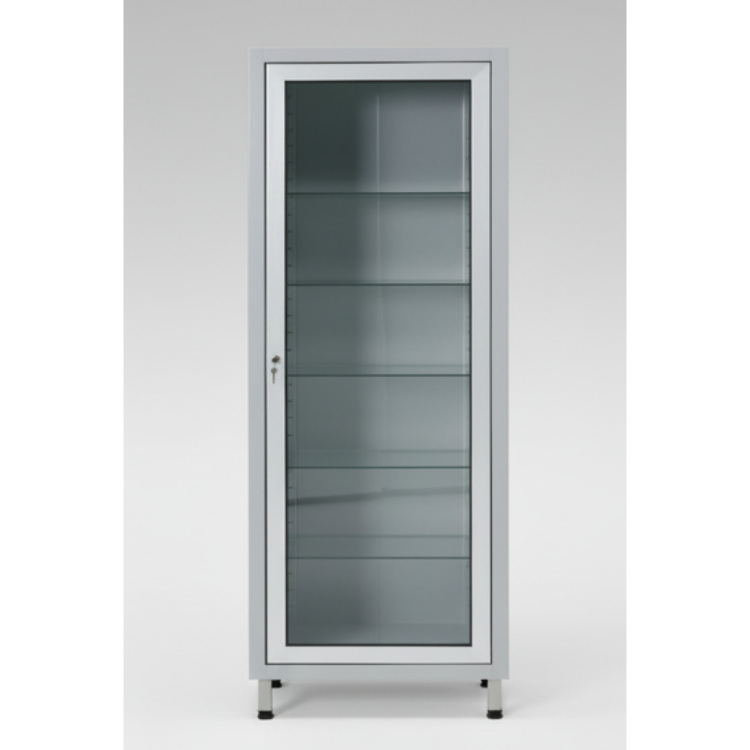 This cabinet ensures that medical staff can easily access and organize surgical tools and supplies while maintaining hygiene and safety standards. The adjustable glass shelves provide flexible storage options, and the transparent door allows for quick inventory checks without opening the cabinet.