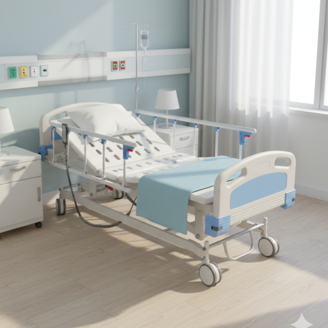Upgrade your healthcare facility with the BE-8162 (TE) Two Motors Four Function ICU Bed, a premium hospital bed engineered for patient comfort, caregiver convenience, and long-lasting durability. Designed for intensive care units, recovery wards, and multi-specialty hospitals, this bed combines electrical and pneumatic functionality for smooth and precise patient positioning.